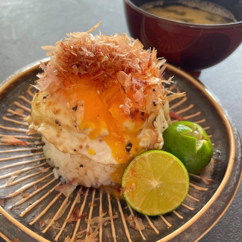 マヨネーズ大さじ1 塩胡椒少々 麺つゆ小さじ1 レタス千切。 たまご1個を ごはん150g 鰹節 大判海苔