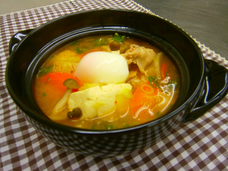 2. 鍋に1を入れて炒める。 3. 水とコンソメ顆粒を入れて、野菜に柔らかくなるまで煮る。 4. 3に牛乳と粉チーズを入れ、ひと煮立ちしたら、塩こしょうで味を調える。 5. 温泉たまごと乾燥パセリをトッピングすれば出来上がり。