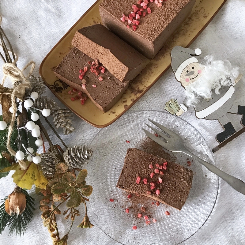 1. クリームチーズ・豆腐・ラカント(砂糖)・みそを合わせてなめらかになるまで混ぜ合わせる。 ※豆腐の水切りは不要。 2. 耐熱容器に割ったチョコ・豆乳を入れ、レンジ(600w20秒)で溶かし、1に混ぜ合わせる。 3. たまご、ラム、ココアパウダーを入れ、なめらかになるまでしっかり混ぜる。 4. 湯せん用の湯を沸かす。 5. オーブンシートをしいたパウンド型に流し入れる。 6. 天板(もしくは大きめの耐熱皿)に湯を1.5cmくらい張り、160℃に予熱したオーブンで35分程湯せん焼きにする。(表面が乾き、少しふっくらしているフルフルの状態が焼き上がり。冷やすと固まります) 7. 冷めたら水滴防止のキッチンペーパーをかぶせ、ラップをかけ冷蔵庫へ。しっかり冷やし固めたら、ココアパウダー(分量外)をふりかけて完成。