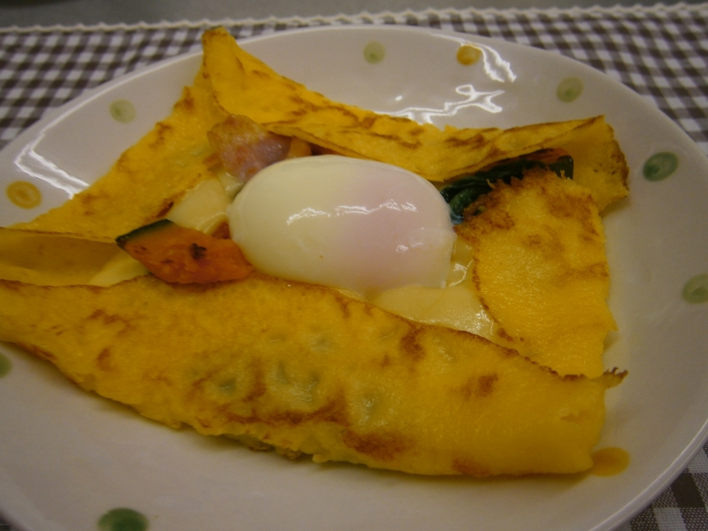 3. 熱したフライパンにキャノーラ油を入れて、2を流し込み半熟状態にする。